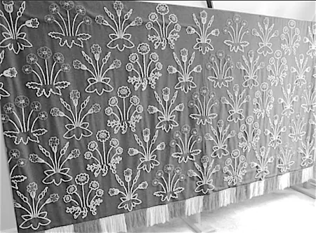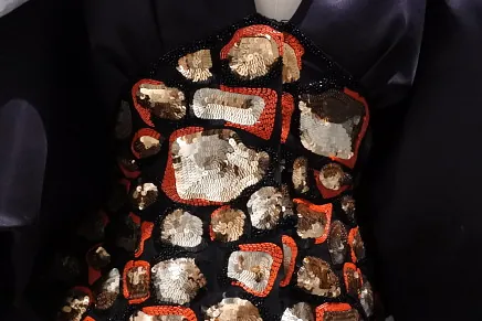 Udsnit af Mitterandkjolen til at studere og røre ved.