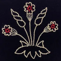 Udstillingsstykke, mømstermotiv opspændt på broderiramme