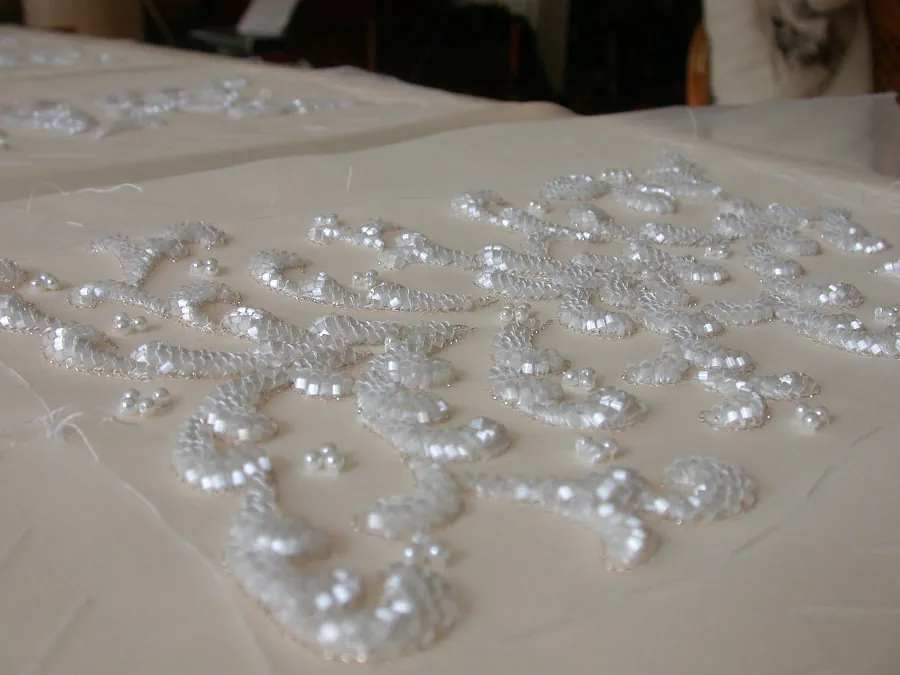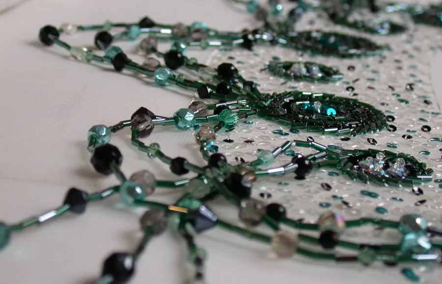 Perlebroderi til bæltestykke - tambureret voks. og glasperler