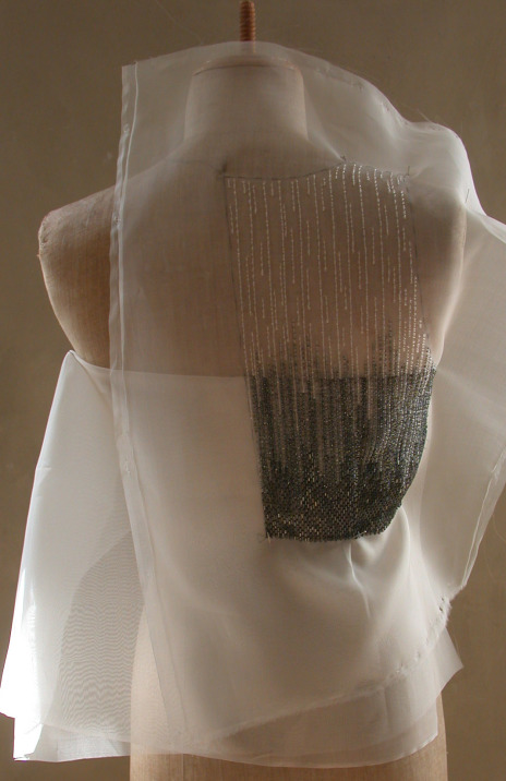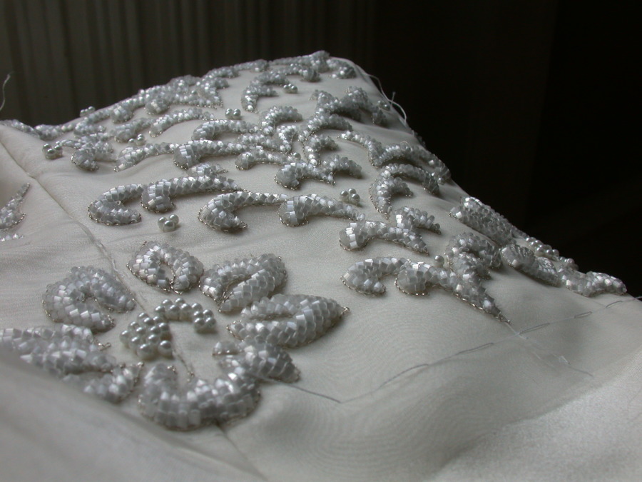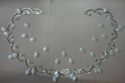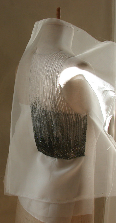 Beads gradation on silk organza for dress top