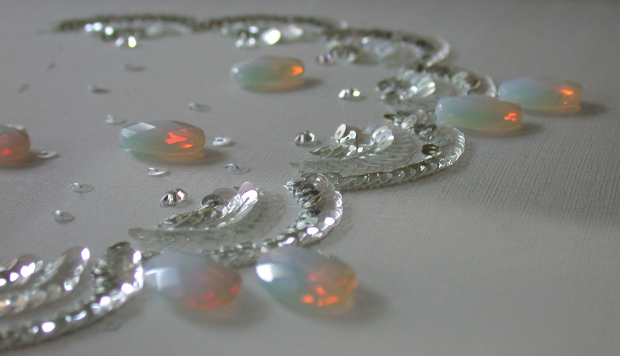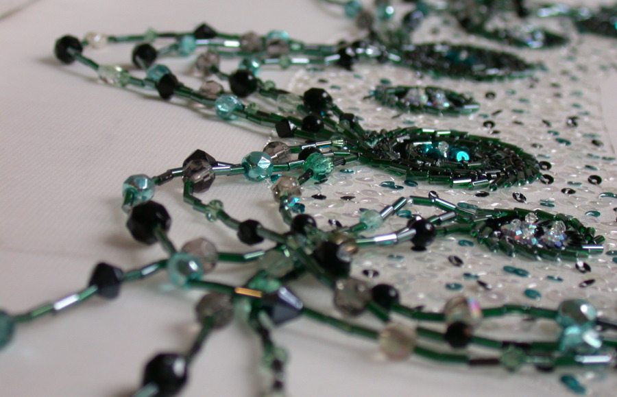 Beads & silk on tulle
