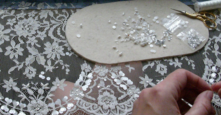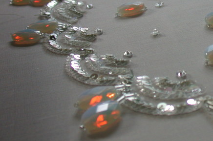 Beads, sequins & stones on lace for bright dress