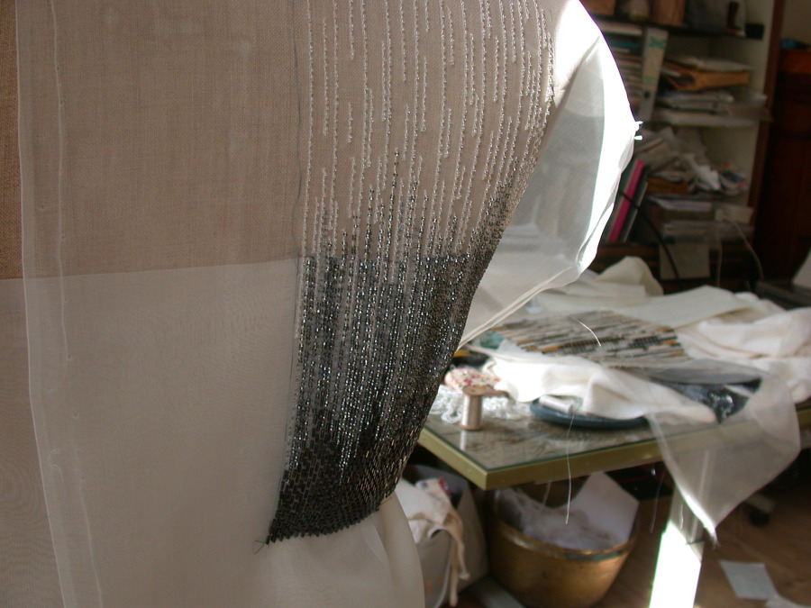 Beads & sequins tambour/Lunéville embroidery on silkorganza - "Col Claudine"- Design: Ole Yde Copenhagen - Collection 2016