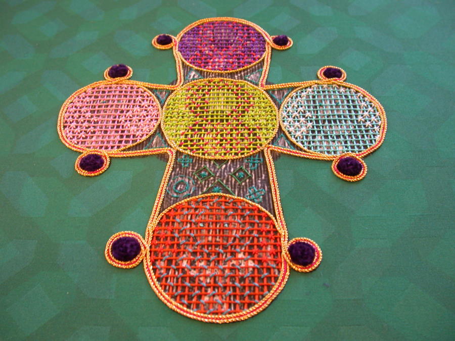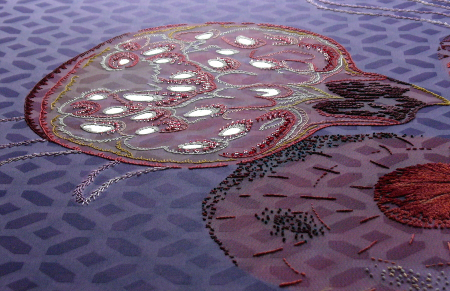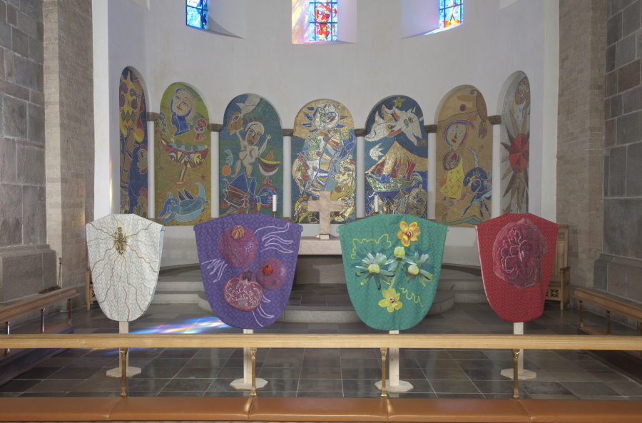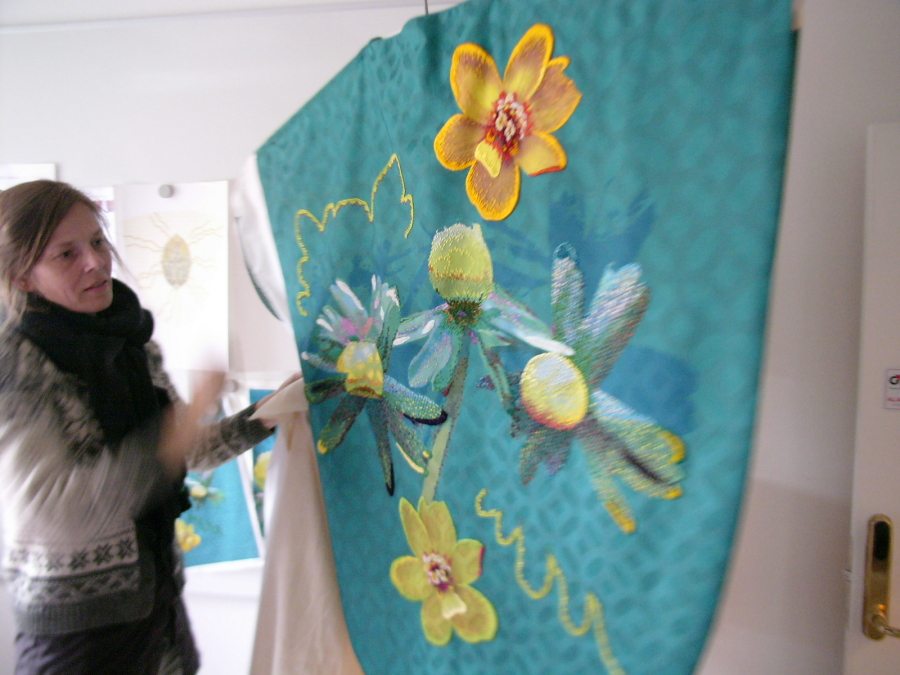 Broderi til messehagler af tekstilkunstner Puk Lippmann